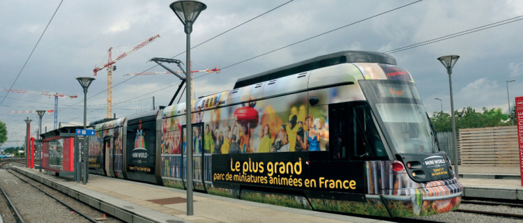 À l’occasion de l’ouverture en juillet du parc de miniatures Mini World à Vaulx-en-Velin, près de Lyon, une rame de tram Rhônexpress a été pelliculée aux couleurs de cette nouvelle...