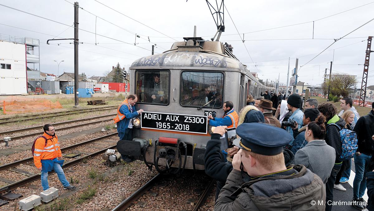Ce 8 décembre a marqué la fin des circulations commerciales des Z 5300 sur les lignes de la banlieue de Paris-Sud-Est. La disparition des dernières représentantes des célèbres « petits gris » s’est faite en deux étapes par suite de l’arrivée des rames neuves Regio 2N. Tout d’abord, en décembre 2017, pour les cinq rames encore en roulement sur la ligne R, où ces Z 5300 assuraient les navettes Melun – Montereau. Puis en décembre 2018 pour les 10 rames en roulement sur le RER D (navettes Juvisy – Melun). À l’initiative d’une poignée de cheminots, une triplette a assuré un ultime AR entre Paris et Montereau, sans arrêt, à l’aller par Brunoy et Fontainebleau, au retour par Héricy et Corbeil-Essonnes. Les rames étaient la Z 5362, presque en aménagement d’origine, et les Z 5317 et 5368 rénovées, cette dernière avec une livrée colorée.